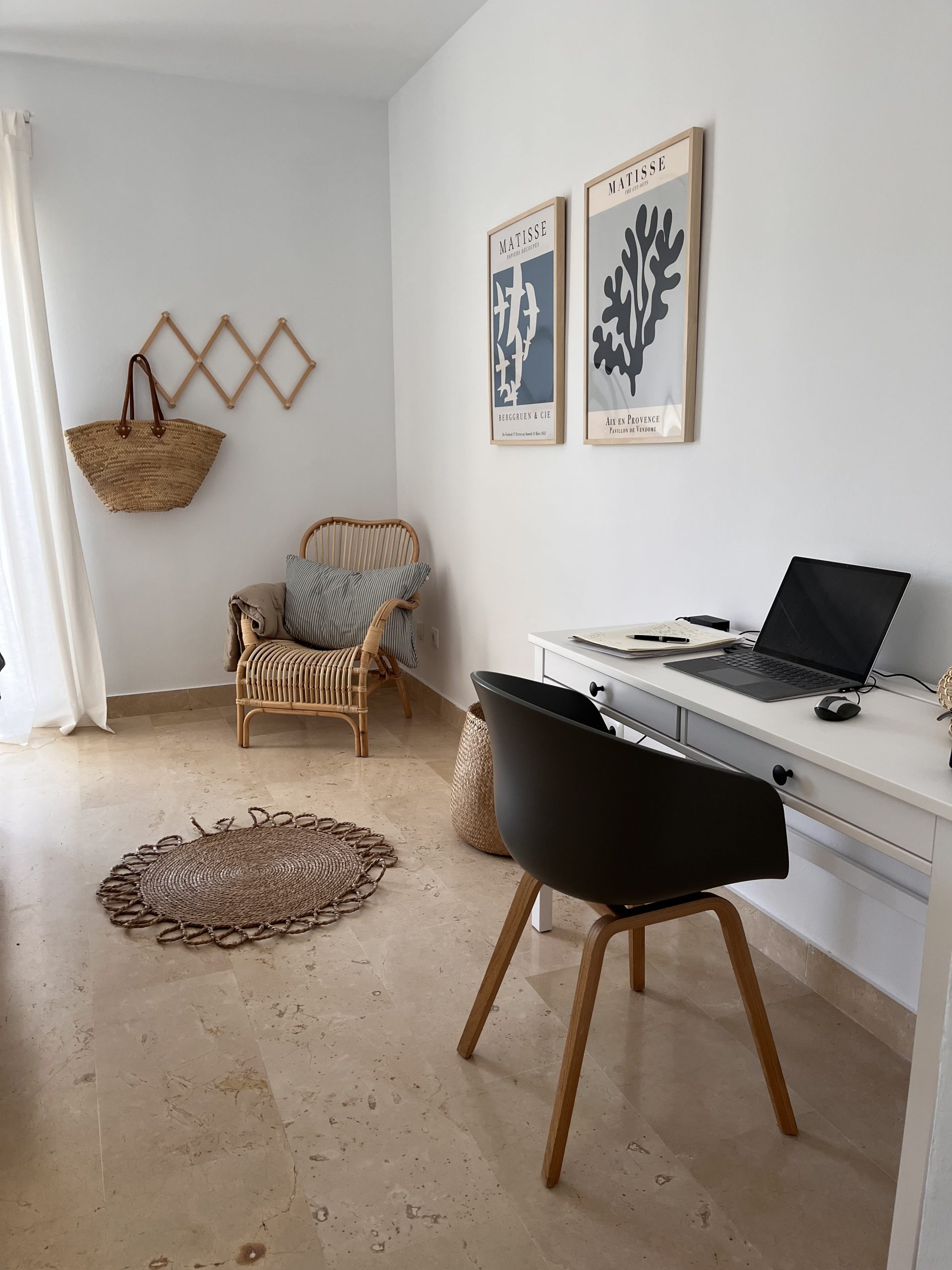 Lys og lækker master suite på 30 kvm med fransk-altan, 8 indbygningsskabe og kontorplads. Værelset har en king size seng med madras af høj kvalitet. I master suiten finder du det ene af lejlighedens to badeværelser. Badeværelset er lyst og rummeligt med badekar og brus – alt er holdt i lyse travertin fliser. Værelset blev, ligesom de andre værelser, totalrenoveret i april 2020.